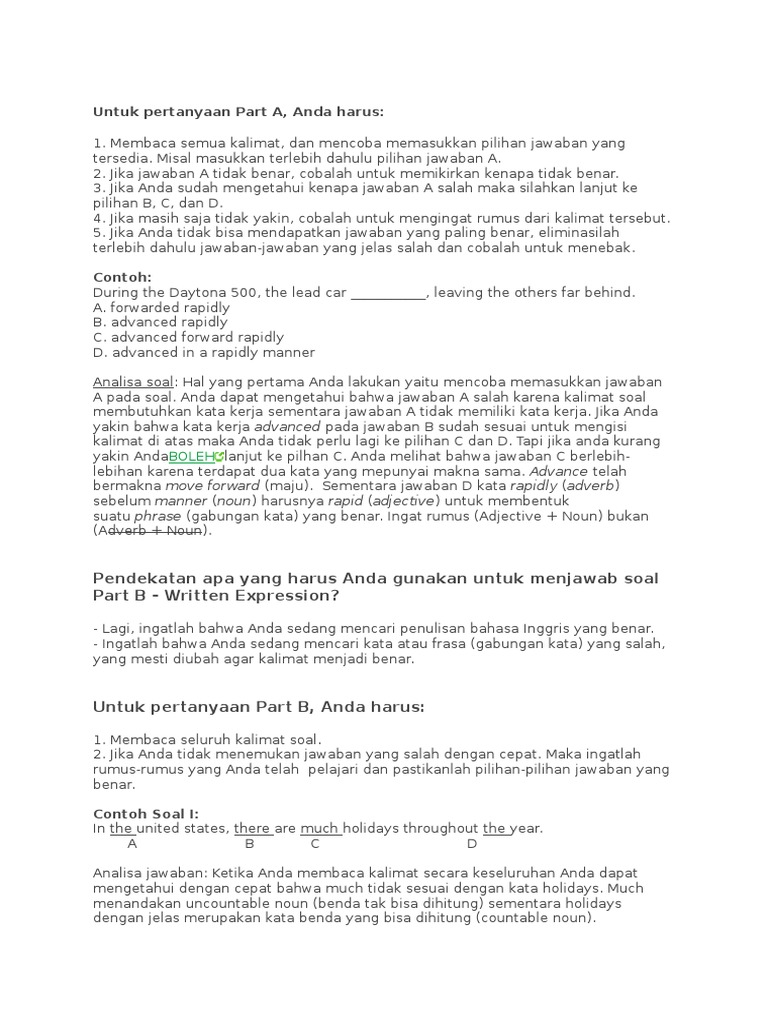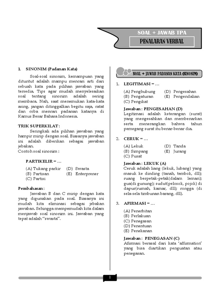 27+ Contoh Soal Toefl Dan Jawabannya - Contoh Soal Terbaru from imgv2-2-f.scribdassets.com Nah demikianlah yang dapat kami bahas mengenai ulasan tentang contoh soal psikotes beserta jawabannya, semoga artikel ini bisa memnambah wawasan dan dapat membantuk, semoga bermanfaat, sekian dan terima kasih. Artinya teknis pelaksanaan soal tesnya hampir sama antara pppk dengan cpns. Untuk mendapatkan contoh soal yang lebih banyak lagi baik itu contoh soal twk cpns, contoh soal tiu cpns dan contoh soal tkp cpns, ditambah dengan soal cpns dengan sistem cat, anda bisa mendownloadnya di alamat ini Pelajari contoh soal tkd cpns dan kunci jawabannya lengkap yang terdiri dari twk, tiu dan tkp sebagai persiapan mengikuti seleksi cpns 2018. Mengapa awambicara.id tidak menyertakan link download contoh soal cpns beserta kunci jawabannya adalah karena disini kami menitik beratkan pada pembahasan soal cpns. Berkut ini contoh soal tes masuk kerja indomaret/alfamart dan jawabannya, soal psikotes indomaret dan jawabannya agar lulus tes indomaret. Contoh soal twk cpns 2018 dan jawabannya pembahasan secara lengkap bagi peserta tes yang dibahas menggunakan cara paling simpel. Berikut adalah contoh kumpulan soal cpns dan jawabannya.