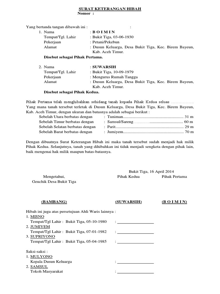 Pada hari ini minggu tanggal 27 februari 2011 para ahli waris telah bersepakat untuk memberikan sebidang tanah sebagai pembagian waris dari almarhum : Setelah kesepakatan bersama, maka dibuatlah surat pernyataan persetujuan yang menjadi jaminan dan bukti autentik sebelum kesepakatan atau. Surat persetujuan ahli waris menjual tanah rumah mata hukum doc. Semua contoh ini ada karena kebutuhan akan surat ini memang besar. 15 contoh surat keterangan ahli waris yang resmi dan sah. Syarat dokumennya sendiri adalah sebagai berikut Contoh surat pernyataan pembagian warisan. Pdf kedudukan surat wasiat terhadap harta warisan yang belum. Format surat persetujuan ahli waris. Surat keterangan ini sekilas hampir mirip dengan surat pernyataan, namun sejatinya ke dua surat tersebut adalah surat yang berbeda. Kami yang bertanda tangan di bawah, ahli waris dari alm yessi rizfi bin munafiqun. Surat keterangan usaha ini berguna sebagai payung. Contoh surat keterangan hibah tanah doc.